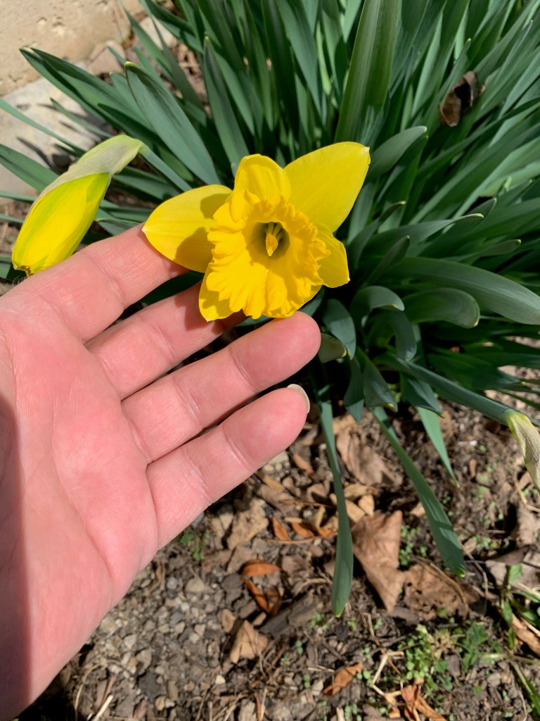Woke up around 4 AM for some reason, pulled open the curtains and saw – snow??? Yeah, snow, not that daffodil up there from this weekend. But I’m not going to put up a picture of snow because things are depressing enough, so hopefully a daffodil will cheer you up. We knew it was coming, the storm, but I don’t think we really believed it. We were lucky because we got just a light dusting. Other parts of the state got as much as 5-8 inches. Sheesh. Welcome to spring.