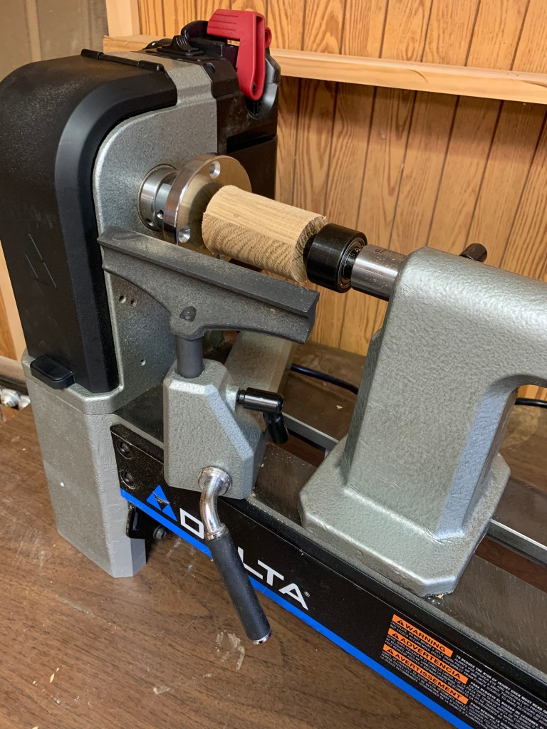 The Delta 46-460 mid sized lathe arrived ahead of schedule, and so far it’s a beauty. Now I don’t have a lot of experience with lathes, but to me going from the piece of junk I had to this is like going from a Model-T to a Porsche 911. Holy cow it’s nice! Beautifully machined, everything fits flawlessly, bearings are perfect, heavy, nicely machined cast iron and steel. It was even boxed beautifully. It was double boxed, with a heavy duty cardboard box on the outside, a 2nd even heavier duty box inside of that with foam spacers to protect the inner box, then about 6 inches of dense styrofoam inside of that encasing the whole thing. Set up took no time at all. Just wiped it down to get rid of the excess oil, checked everything over, put the banjo in place and it was ready to go. It is a pretty hefty beast, though. Shipping weight is about 120 pounds, but all that weight helps to damp down vibration.