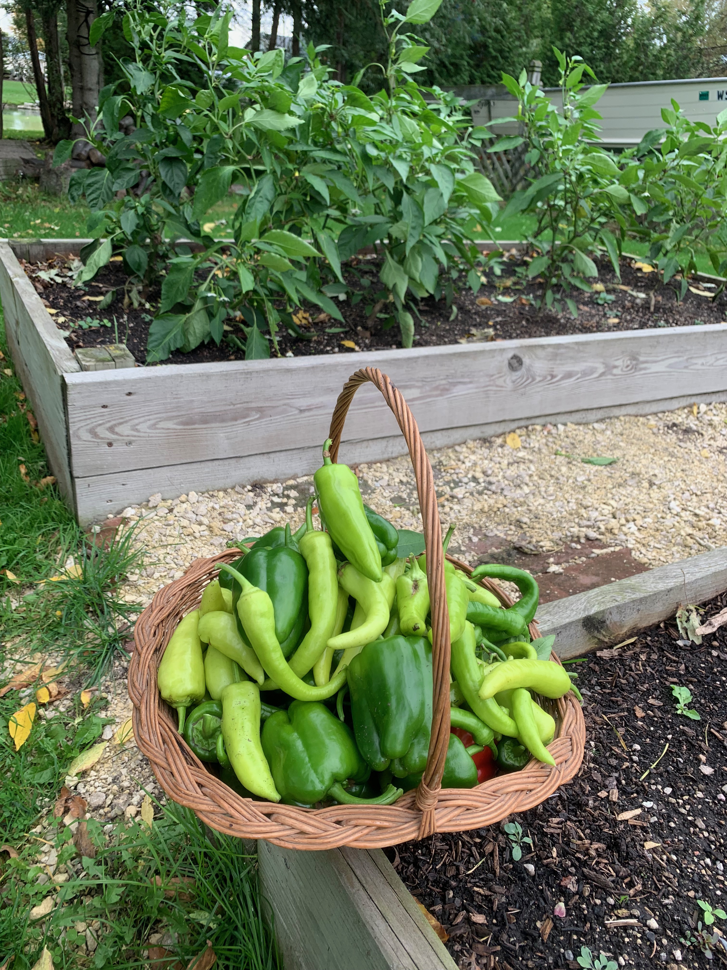 Autumn is one of my favorite seasons, but it is still a bit sad because it means the growing season is coming to an end. We haven’t had frost yet, but that will be coming very soon, so it was time to get one last picking from the peppers. I always thought pepper plants liked hot weather and long days, but that doesn’t seem to be the case with these. They’ve been thriving in the cooler weather and shorter days. The dopey things have been producing more now than they were during the height of the growing season.