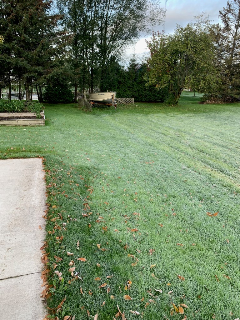 We got frost at last the other day. According to the electronic temperature recording thingie hanging on the wall it got down to 27F and most of the lawns around here were covered in white when I got up the other morning. Then a few days later it got even colder and even the cars were covered with frost.