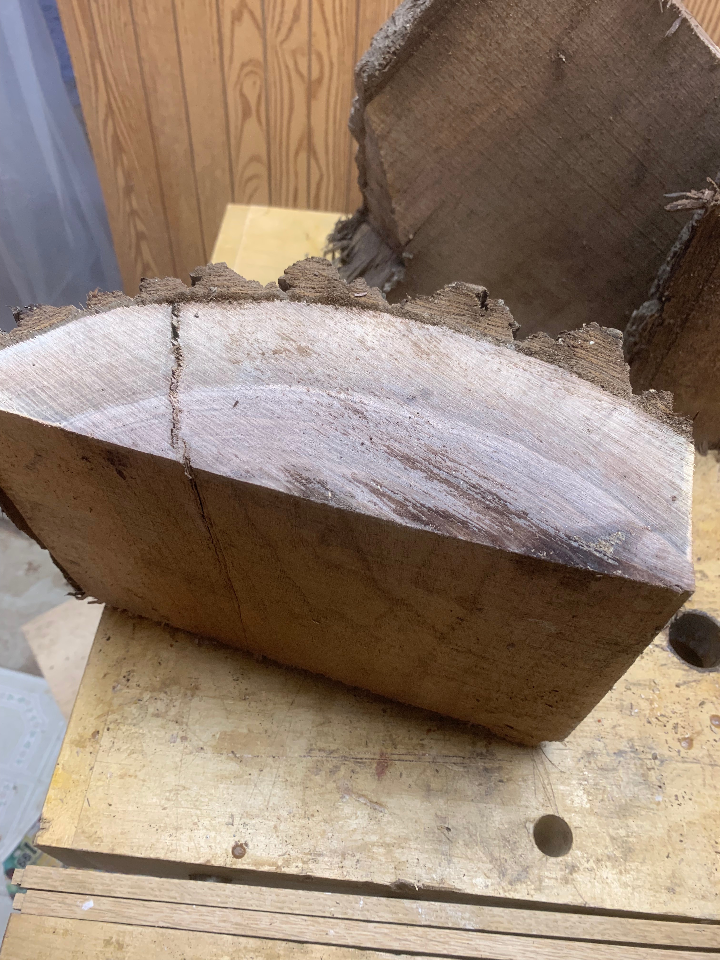 The last issue you need to deal with is the fact that a lot of this stuff is cut directly from living trees that were just cut down, so it is very, very wet and you need to be able to deal with that. Now I know a lot of turners who like working with wet wood and have developed ways of dealing with it, and if you’re one of those, that’s fantastic. But if you’re like me and you prefer to work with wood that is already dried, you need to be prepared to store this stuff for a long, long time before it’s going to be dried down to a usable moisture level, or you need to be able to dry it yourself. The walnut slabs I’m working with right now sat in a dry environment (my garage) for about 5 or 6 years so they’re down to about 10% – 15% moisture which I consider to be reasonably low enough for me to work with them without a lot of issues. But a lot of this stuff is going to be dripping wet when you get it. So you’re going to need to either store it in a protected area for a considerable amount of time for it to dry naturally, or you’re going to have to dry it yourself. There are plans out there on the internet for making your own drying boxes to accelerate the process and some of them even work reasonably well.