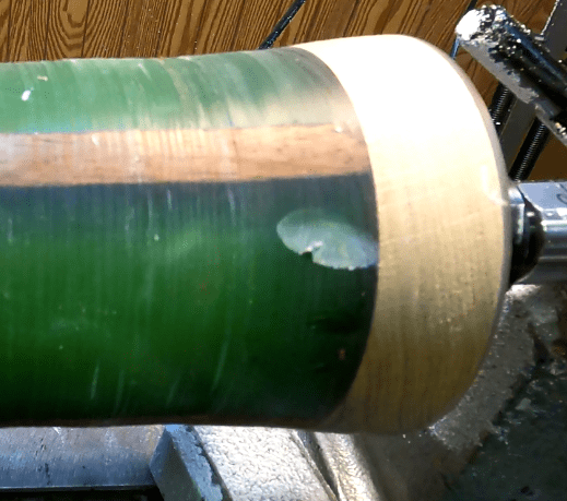 I got so frustrated I just let the thing sit for a while and I was seriously considering just chucking the whole thing into the fire pit. Fortunately a new 3D printer arrived to distract me and after playing with that for a few days I got back to work and eventually ended up with something that wasn’t so bad I would be ashamed of showing it in public. I ended up having to resort to using 60 grit sandpaper to get all of the pits and chips out and doing the final shaping because even touching it with a lathe tool did nasty things to it.