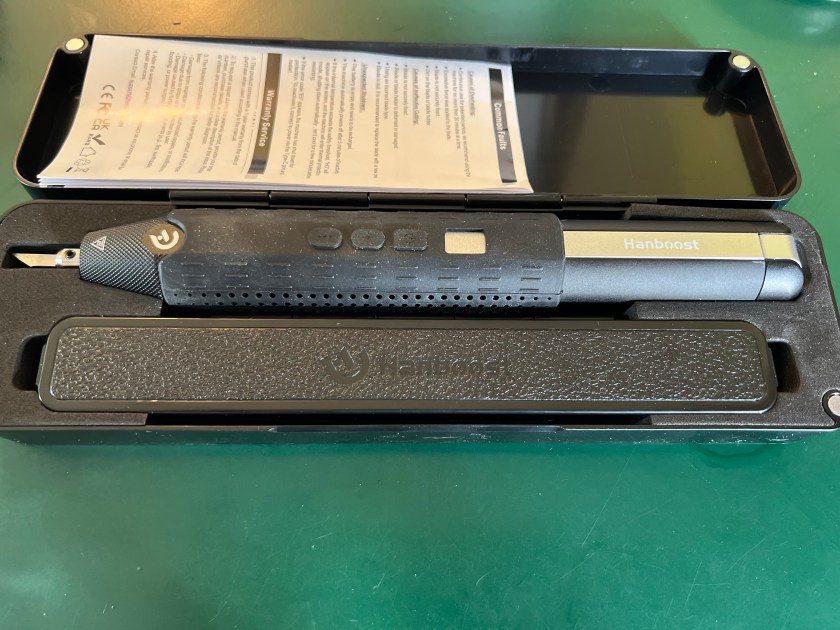 The way these things work is interesting. It takes a razor sharp titanium blade and vibrates it many thousands of times per second. The idea is that the extremely high vibration rate of the blade causes it to glide through material with virtually no effort at all on the part of the wielder. In theory. It seems these things are popular in the 3D printing world where they are used to clean up plastic prints. And someone told me that they work equally well for trimming wooden parts that are laser cut and don’t quite fit properly.