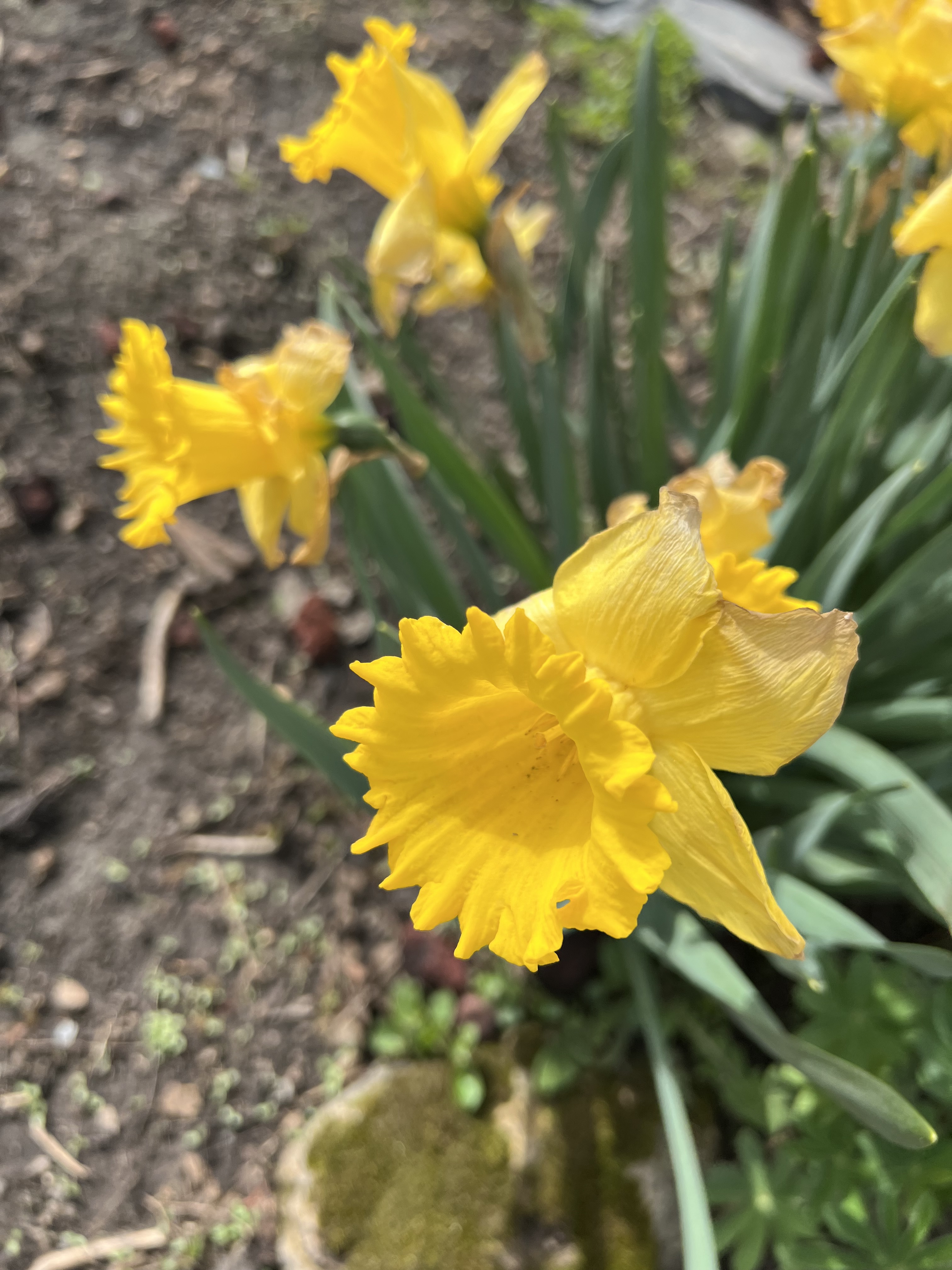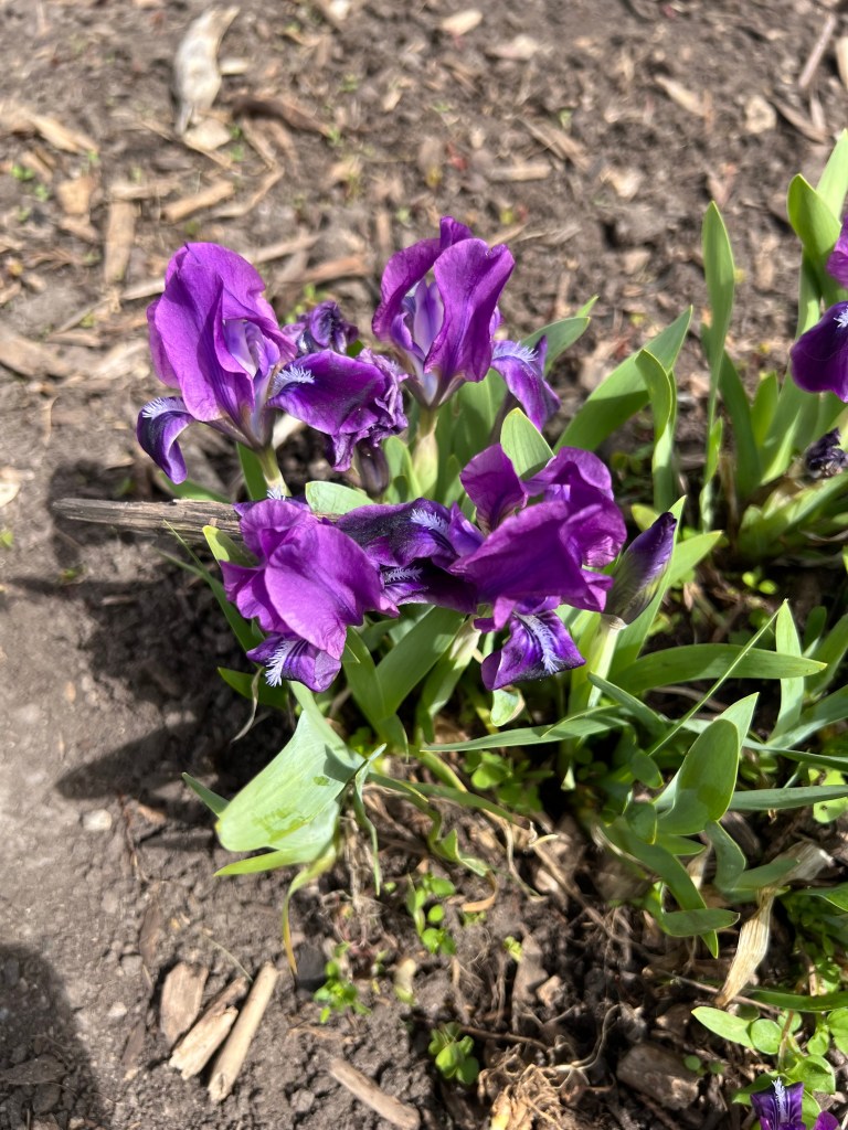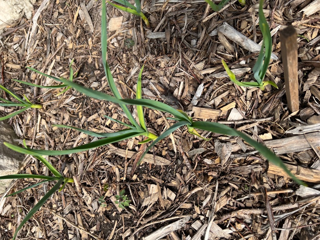 We’ve been busy out in the gardens getting things cleaned up, hauling in compost, weeding, etc. Out in the countryside things still haven’t greened up much, but it’s getting there. Here in town, though? Everything is growing like crazy. I had to mow the lawn already last week and I’ll probably have to do it again in the next day or two. We have a whole line of cilantro coming up in one of the raised beds from seed that was dropped last fall so we’re pleased with that.