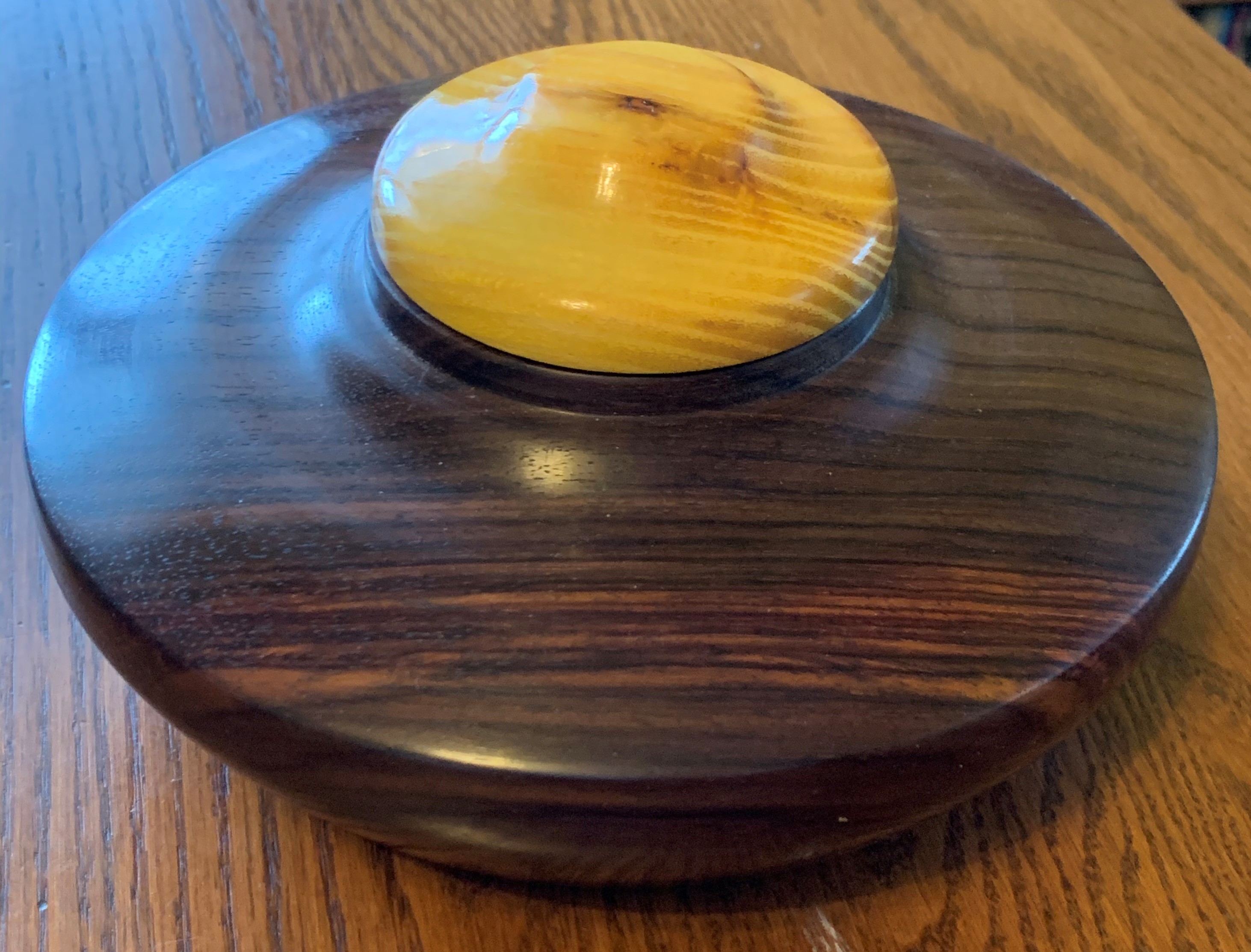 I also use the sliding table with jigs I make myself (usually cutting them out of acrylic plastic or plywood on the Falcon) to hold small objects. or with guides clamped down to the edge of the table that I use for coasters. Below is a jig I cut from acrylic on the Falcon to do challenge coins 6 at a time.