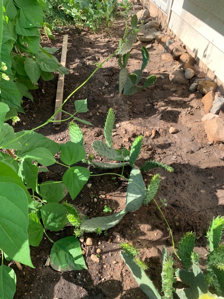 MrsGF cut three pads off it, stuck ’em in the dirt, and guess what? Yeah, they’re growing too tucked away back there against the foundation wall of the house.