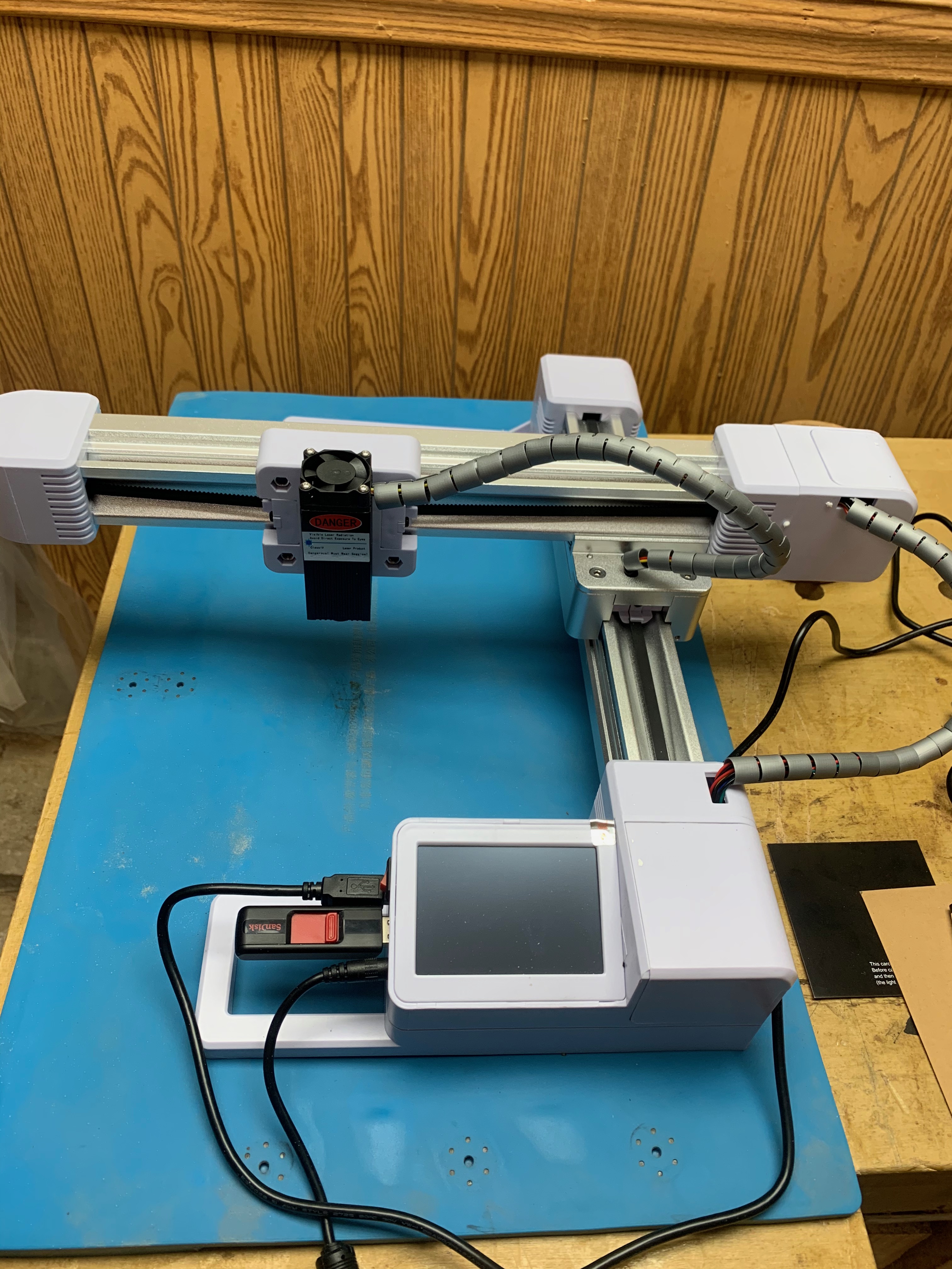 What makes this unit interesting is that it has two different lasers built into it. There is a more or less normal 10W blue diode laser for working with materials like wood, paper, some plastics, etc. But there is also a 3W infrared laser that lets it actually engrave metal. That’s the real reason I was interested in this purple beastie. I wanted to be able to engrave metal. And at the time I bought it, it was the only one on the market that had all of these features. X-Tool and a couple of others have brought out units that are comparable to this one now, though, so if you’re in the market for one of these do some shopping around.