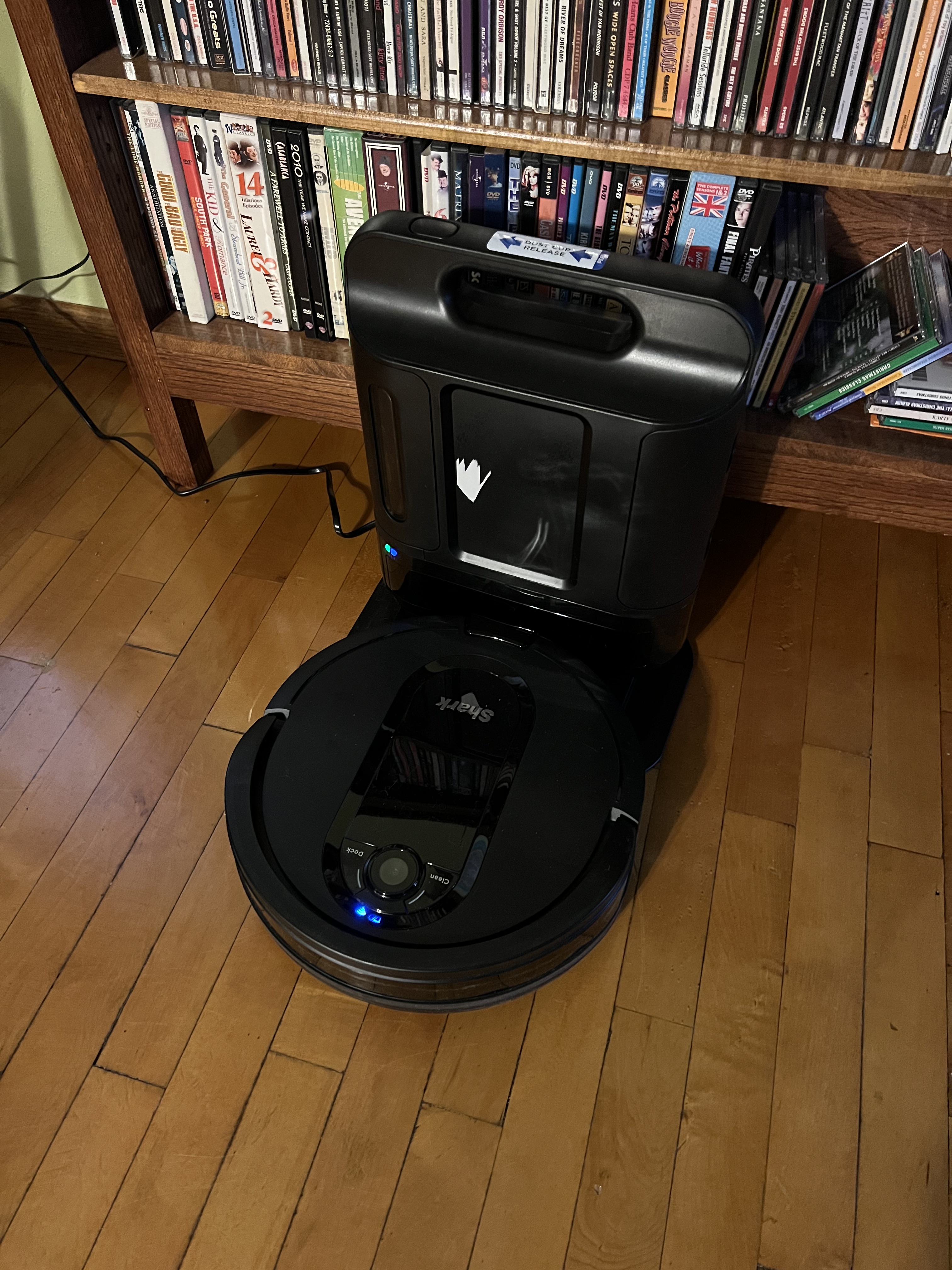 Oh, almost forgot, the new vacuum thingie. It’s a Shark self emptying robotic vacuum. Normally I wouldn’t have bought one of these but I got the dopey thing on some kind of sale on Amazon for less than half the normal retail price. It was marked down to $200 or so from $500, and I admit that it was sort of an impulse buy.