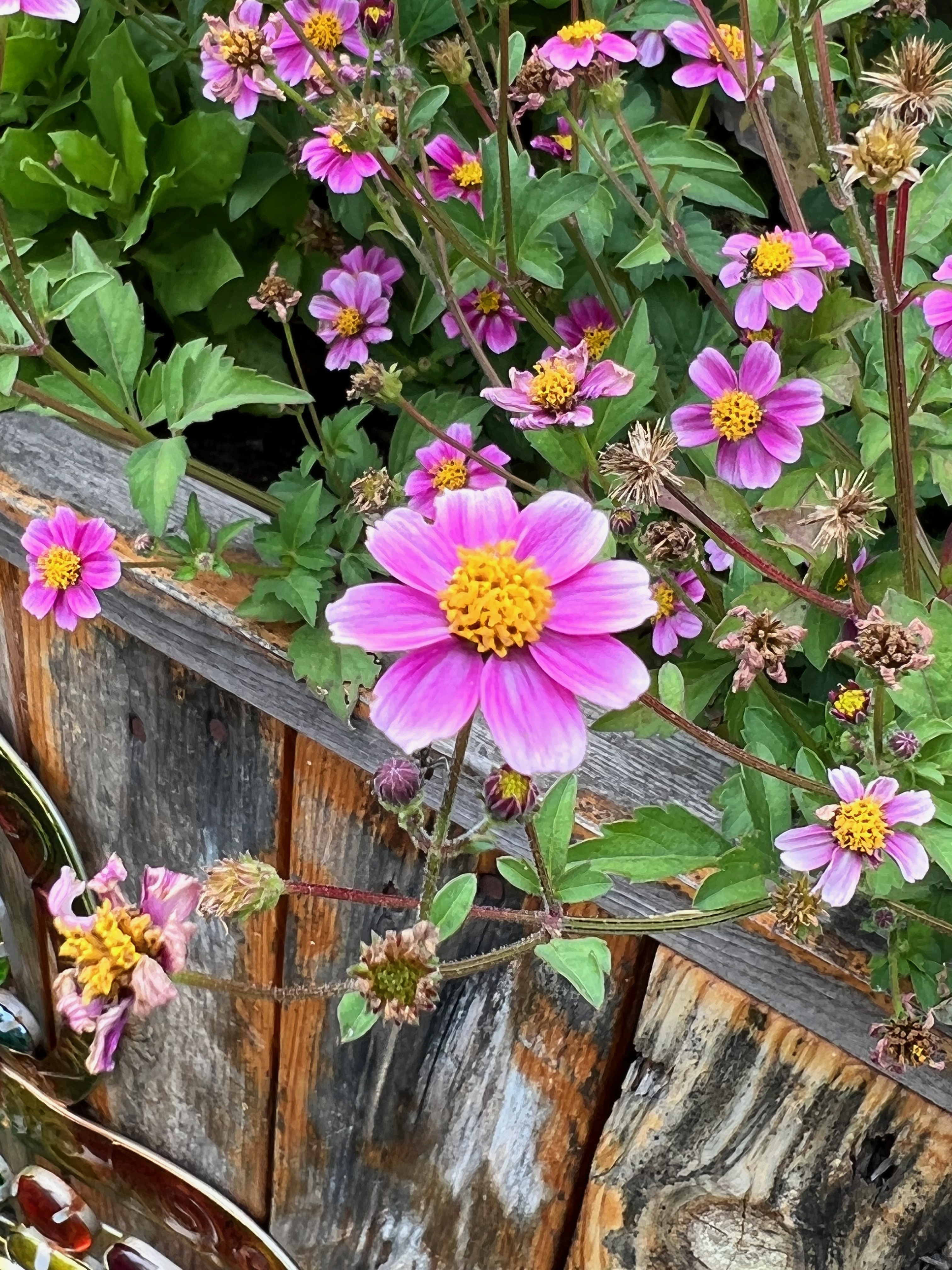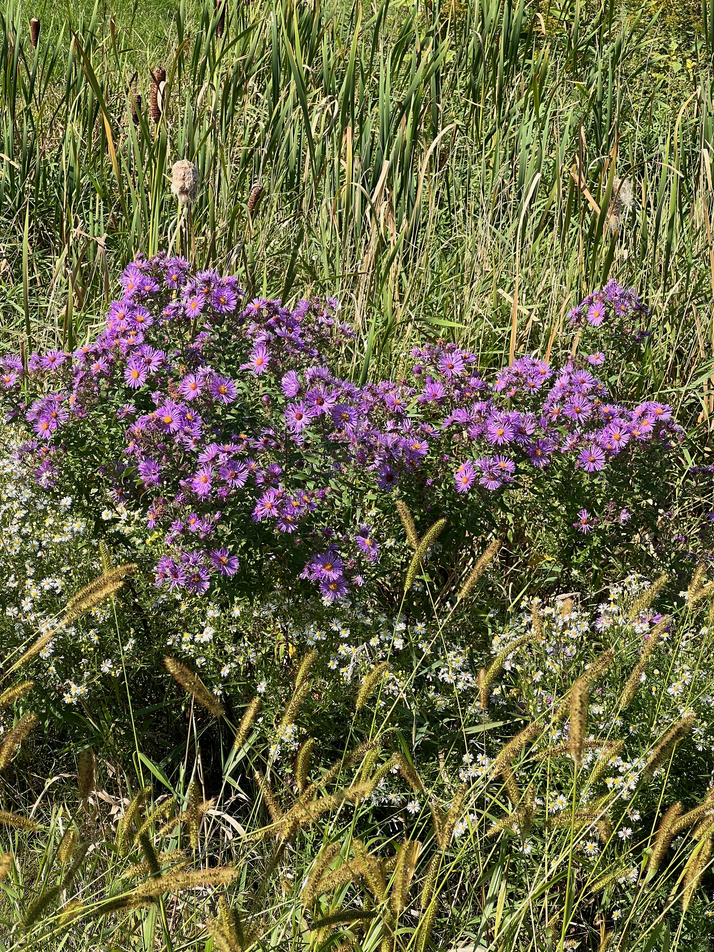 I was rolling down one of the trails and these brilliant purple flower were so bright I could see them from half a mile away, standing out against the dull green grass that’s starting to die back.