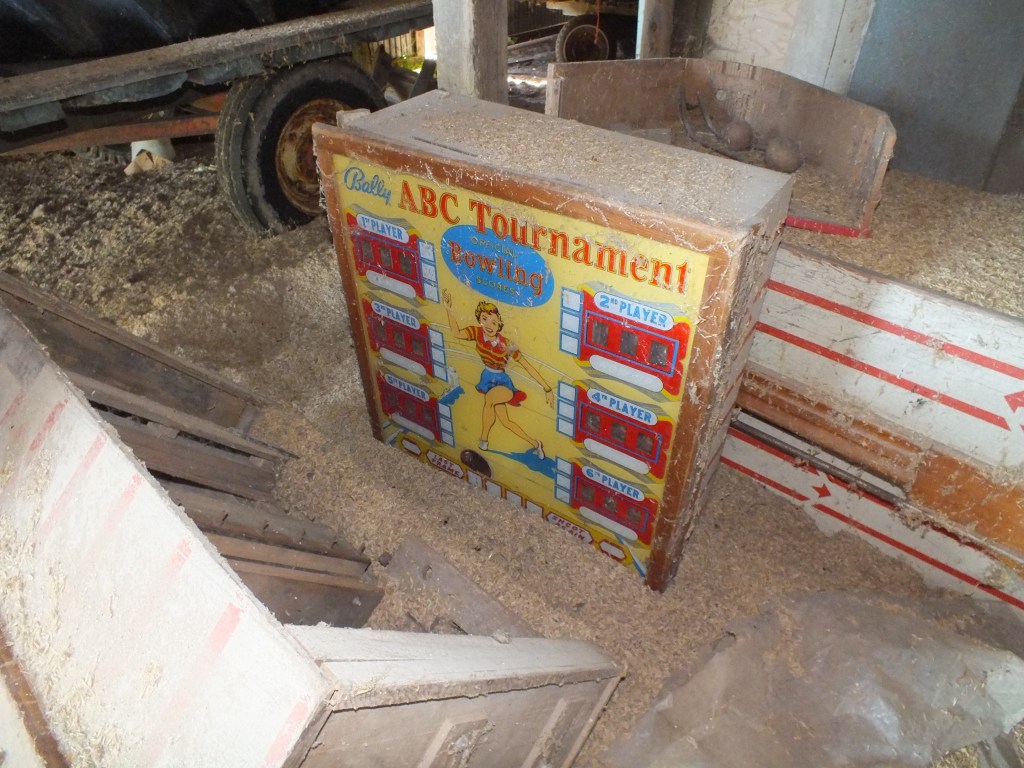 We found some odd things when we cleaned out the buildings on the farm, including a complete 1940s or 1950s era bowling machine.
