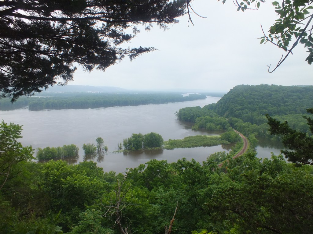 Out on the trails it’s been beautiful, but the hot, humid weather makes it a bit troublesome. I carry about 2 quarts of water with me when I go out and go through at least half of that by the time I get back. Depends on the temperature and how hard I push it. I’m not a ‘power biker’ by any stretch of the imagination. I’m lucky if I keep up an average speed of 8 – 9 mph when I’m out, and I rarely go more than 10 – 15 miles. And there are always surprises, like that photo above. That, believe it or not, is a flock of about 30 pelicans having some kind of feeding frenzy on the river down by the old stone bridge on Irish Road about 4 miles out of town.