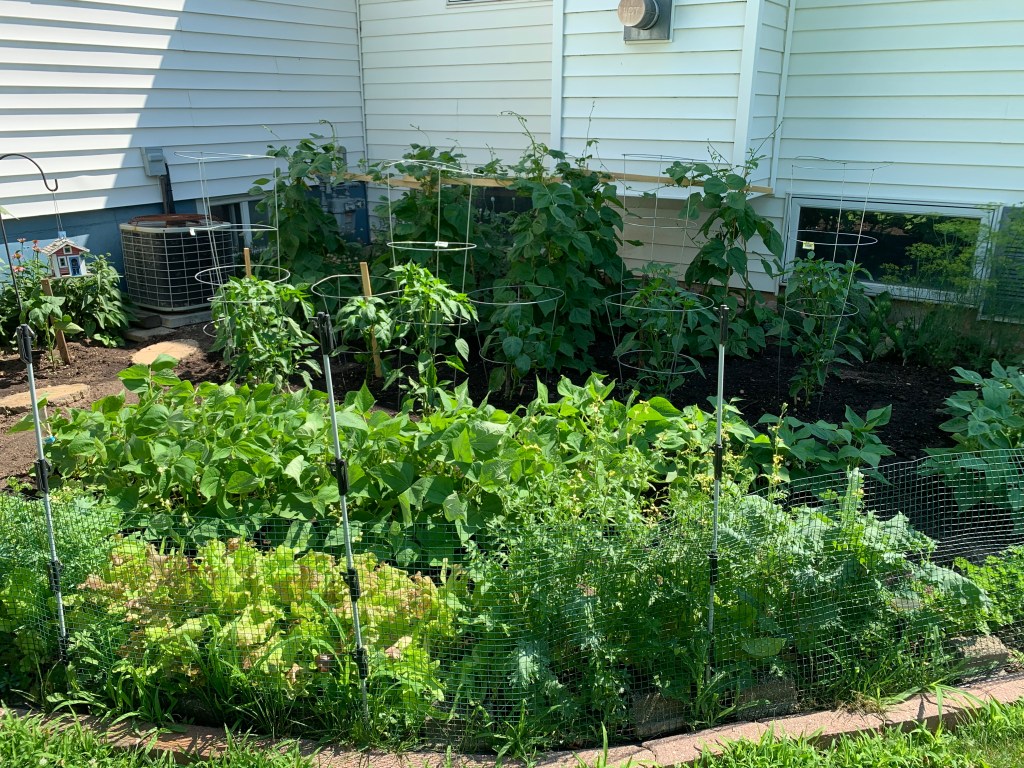The tomatoes have been going crazy. We planted way too many of them last year so we still have shelves full of canned tomatoes in the basement, so we only put in half as many plants as last year, and now that seems it may have been too many. They’re in full flower right now, and if they produce as prolifically as it seems right now, I don’t know what we’ll do with all of them. But that’s a good thing. I’d rather have too many. We can always give them away to friends and family if we can’t deal with all of them. We’ve managed to avoid blossom end rot once we switched to using the raised beds, but there were some signs last year we might be heading for a problem, so we’ve been using a calcium supplement to try to fend that off.
