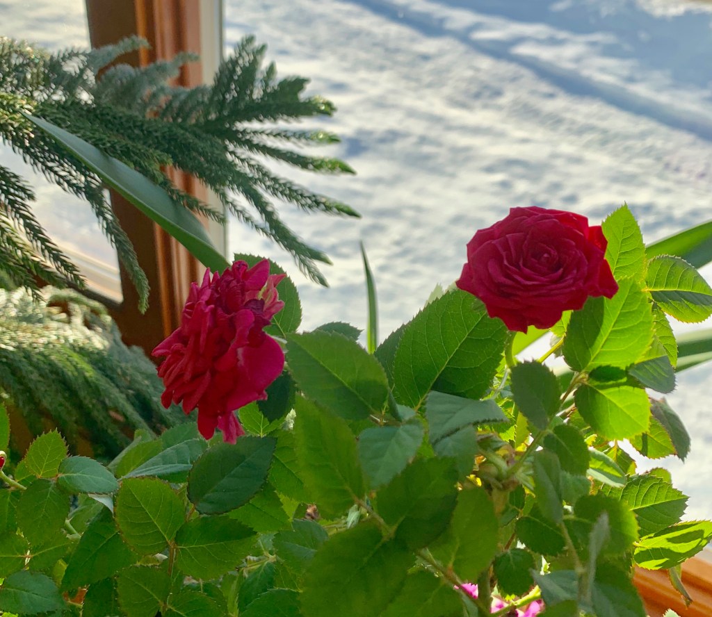 Yes, a Christmas rose! It was a beautiful sunny Christmas morning here, if a bit cold out, I walked over to the window and saw this. One of two new budding roses on that goofy little rose bush that started out life as a $5 teacup rose I bought on impulse for MrsGF a few years ago. Roses blooming in Wisconsin on Dec. 25? Hey, I’m not going to complain. It was an unexpected and amazingly beautiful Christmas gift.