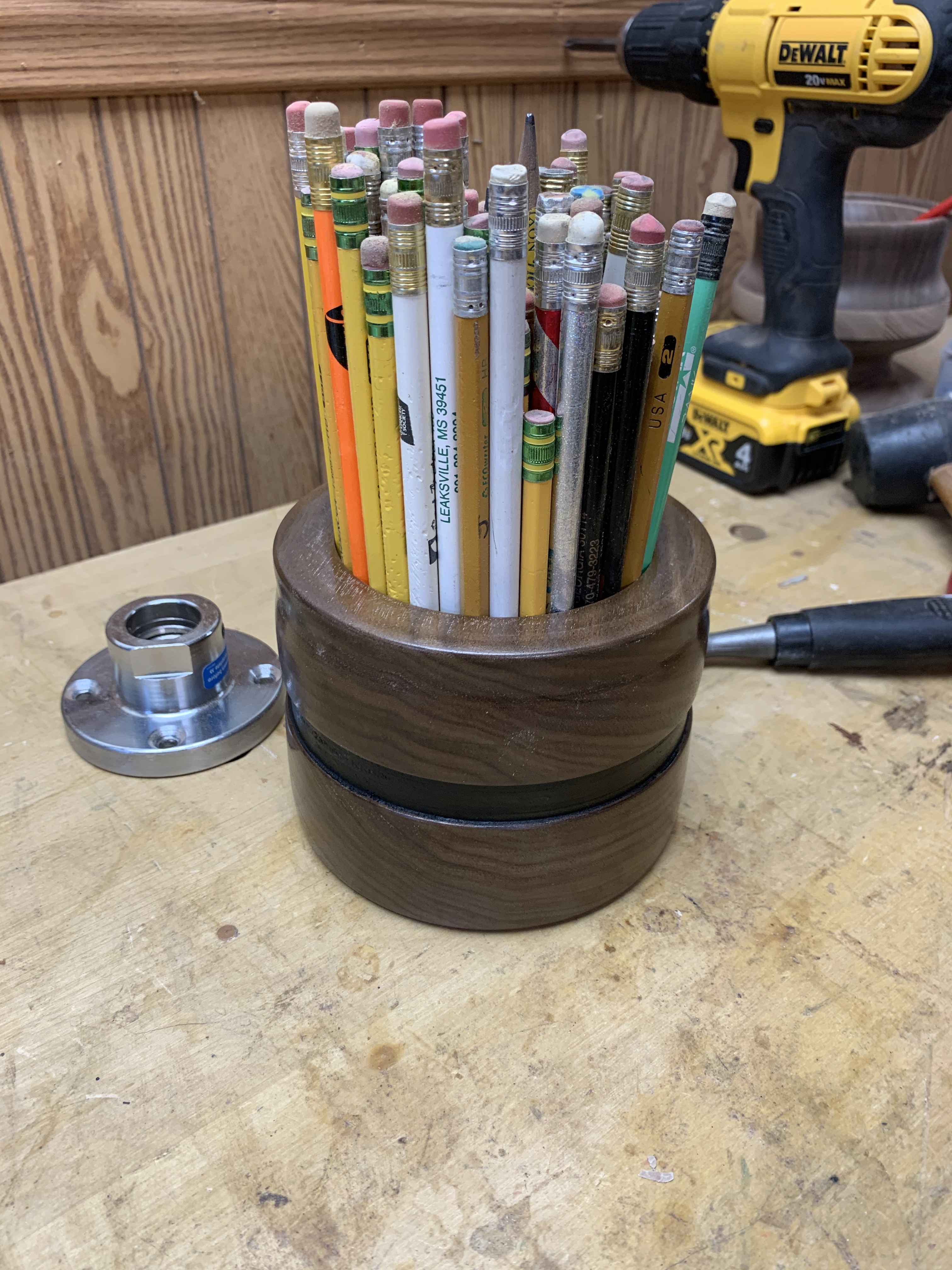 People with good eyes will note that this thing should have been sanded more. But this is going to be a pencil holder for my workbench so I don’t really care that much so I only sanded it up to 240 grit and I wasn’t real careful even doing that. It’s going to get beat up anyway. This has 3 coats of shellac on it.