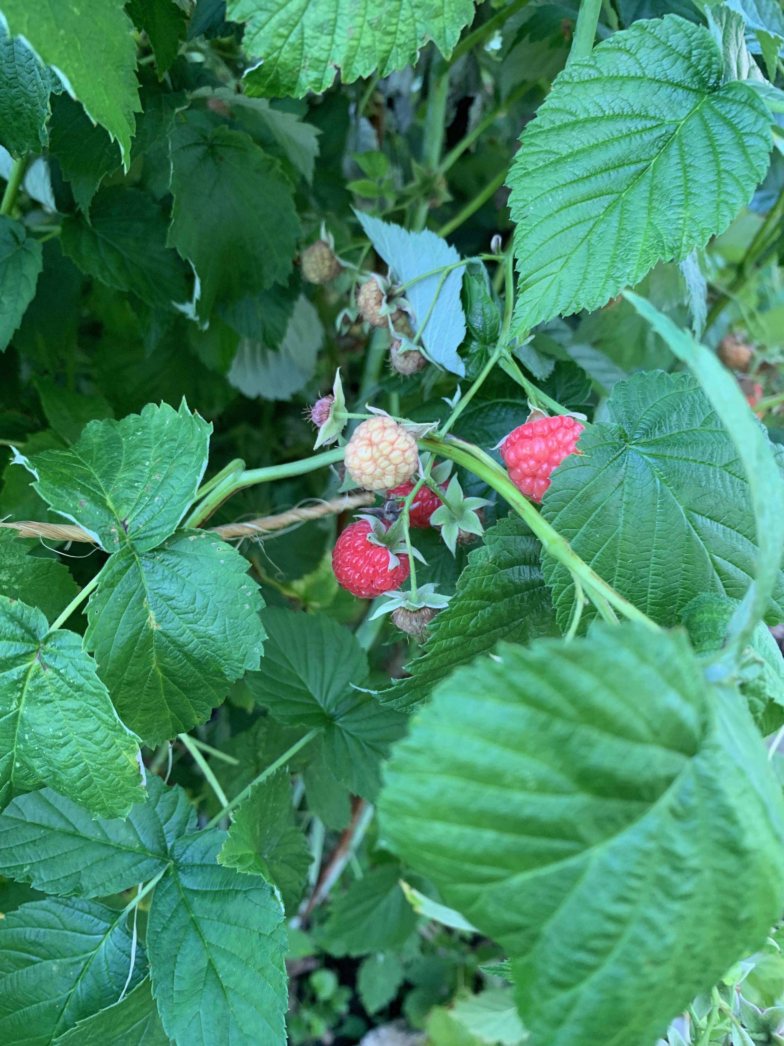 The raspberries were done producing fruit long, long ago, so I was surprised to see this lone berry out there when I was puttering in the garden yesterday. I’m surprised the birds didn’t get it.