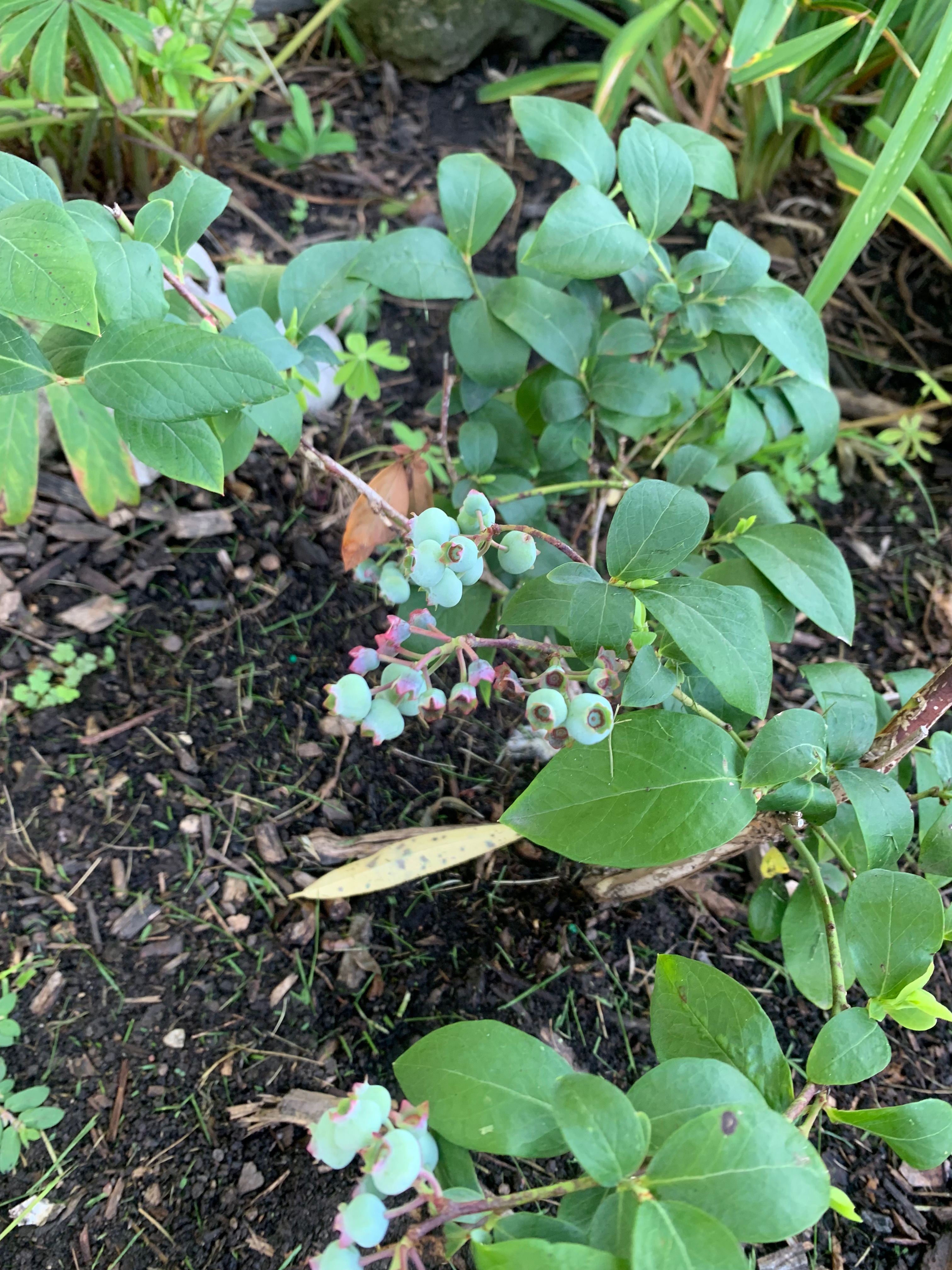 MrsGF is trying to grow blueberries because, well, why not, eh? We had two originally and haven’t had a lot of success with them though. First because we stuck them in a poor location, and when we transplanted them to a better location one didn’t survive so she bought another one. Then the original survivor had some kind of rust that was covering the leaves. We trimmed all of the infected branches off and didn’t think it would survive, but it did and looks pretty healthy. And the new one that we put in this spring has actual fruit on it. Not a lot but heck, even a few dozen berries is better than none.