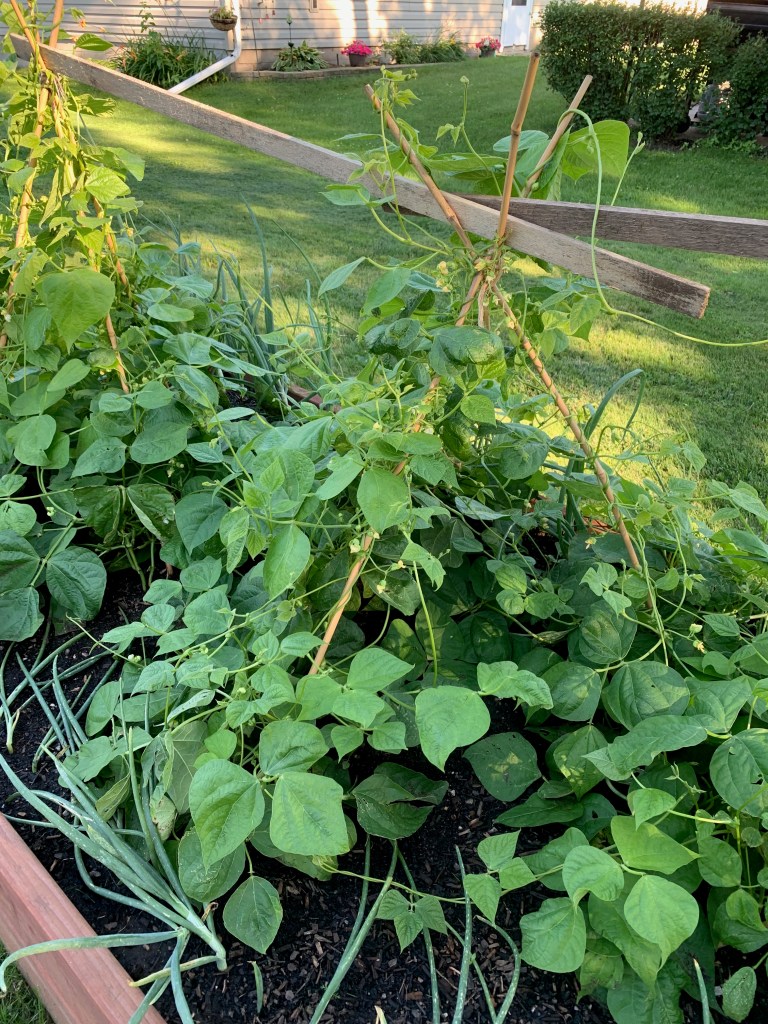 We also have pole beans in another bed and those look like they’re going to be just as crazy as the wax beans. That’s only about six bean plants in there. Sheesh…