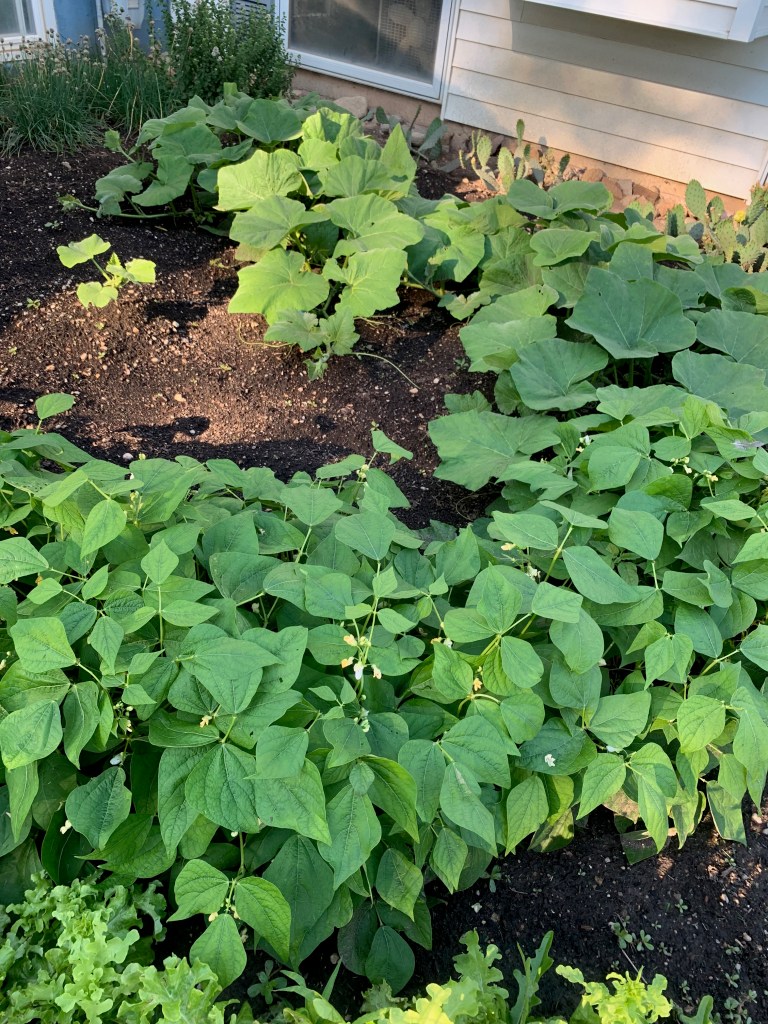 Those beans… Dear lord, what are we going to do with all those beans? There are hundreds and hundreds and hundreds of flowers on those bean plants in there. If half of those turn into beans we could probably fill up the entire freezer with the things. We love wax beans but I suspect we’re going to end up giving away half of these to anyone who’ll take ’em because we’ll never be able to eat all of these.