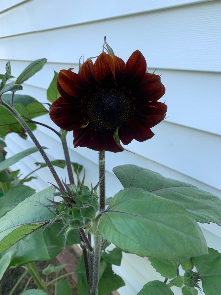 On the decorative side of things we have these cute little dwarf sunflowers coming up now. along with a few other types in there including one variety that is such a dark purple it looks almost black.