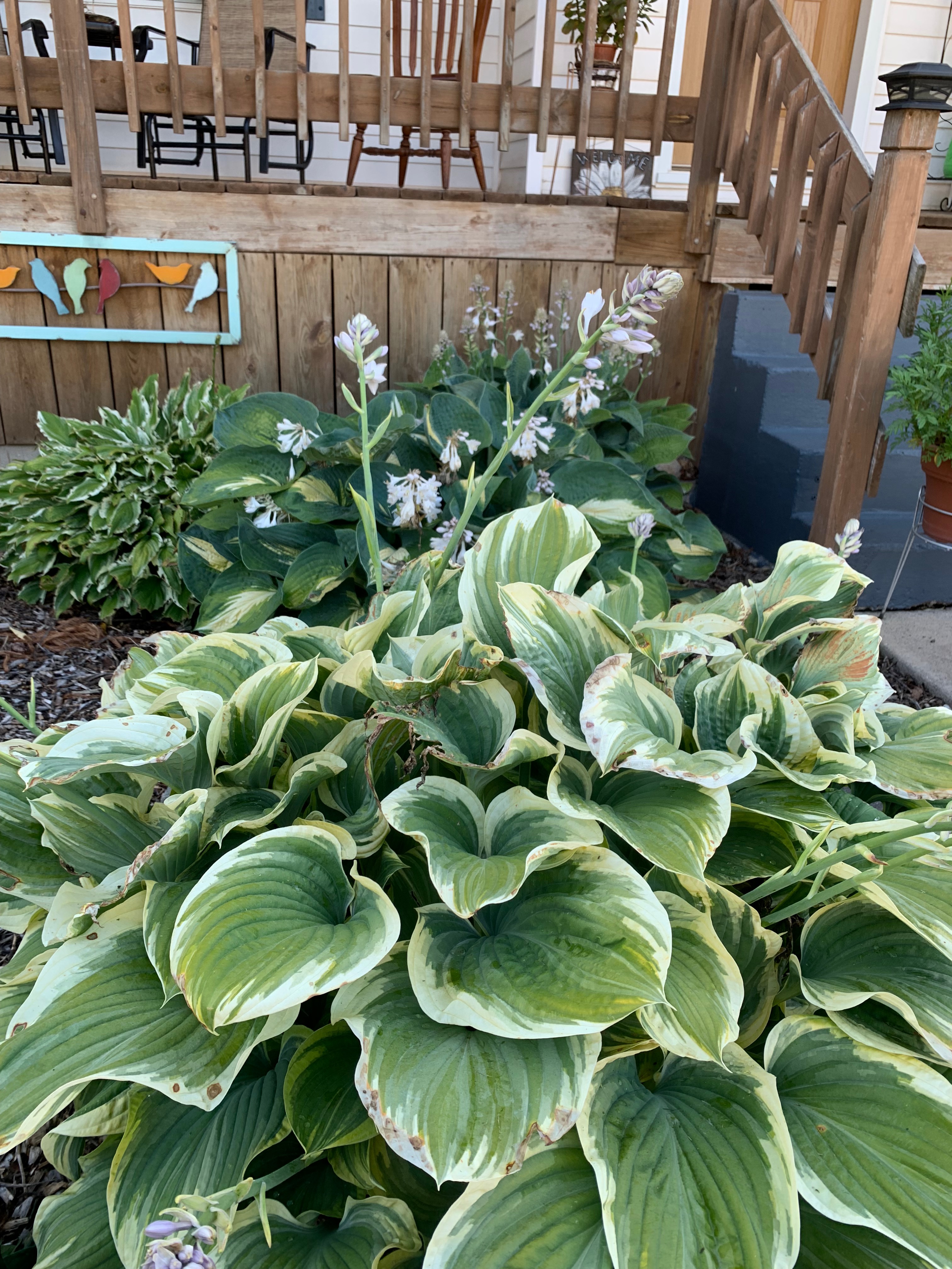The hot, dry weather didn’t do the hostas any good this year. The poor things look pretty beat up. They usually don’t start looking this poorly until September. Still they’re hanging in there and coming into flower which will hopefully attract the humming birds. I’ve seen a few humming birds but for some reason they aren’t coming to the feeder. I think they had a nest somewhere out back because I’d see them buzzing around back there, but I haven’t seen them for a while now.