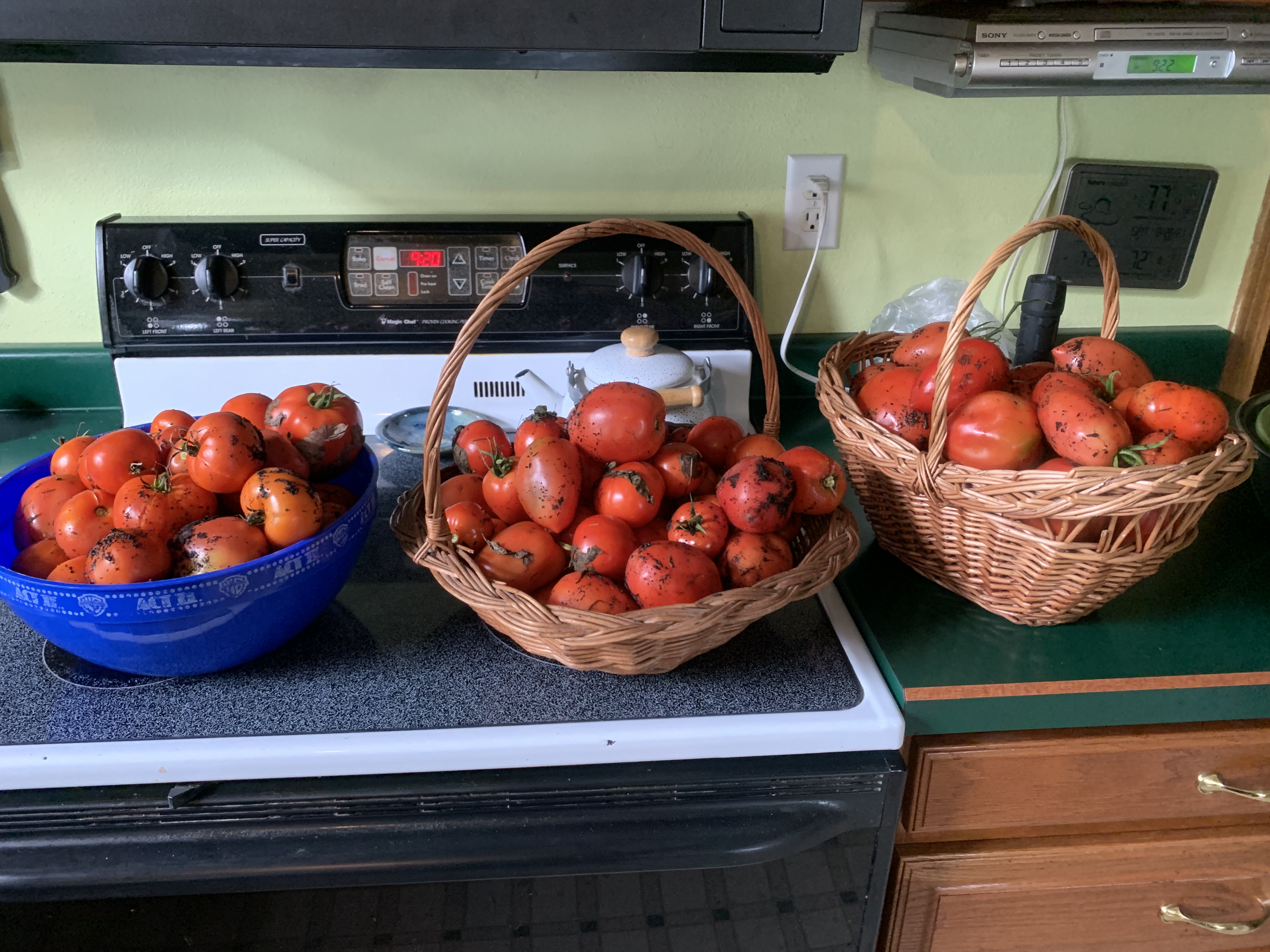 And judging from the color, it looks like what MrsGF and I are going to be doing by the end of the week is processing tomatoes into sauce, soup, and just canning/freezing them.