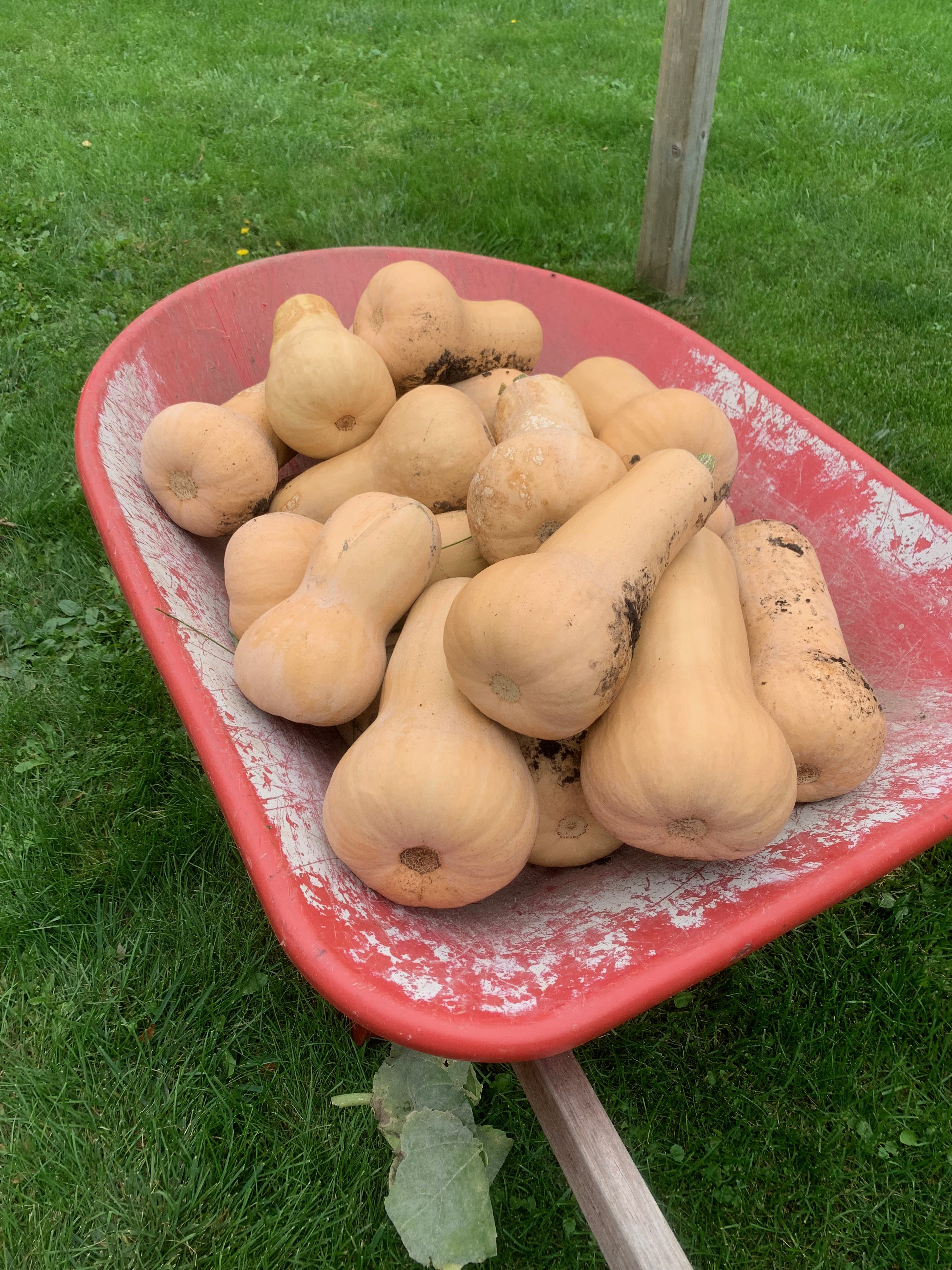 The growing season is over for some things here. We took out the butternut squash plants two days ago. Well, what was left of them. They’d been dying back for a couple of weeks now as they came to the natural end of their lives. But they left behind a massive amount of squash.