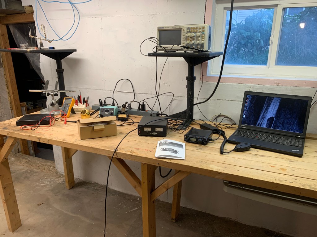 I’ve had the Yaesu 818 and the mag-loop antenna for some time now and they’ve been fun to play with, but the ultimate goal was to put together a QRP (low power) digital communications package that I could throw into the back of the car and take along when I go fishing or out taking photos. My favorite modes of communications are PSK31, FT8 and JS8Call, so I picked up that refurbished Lenovo laptop you see in the photo of the workbench.