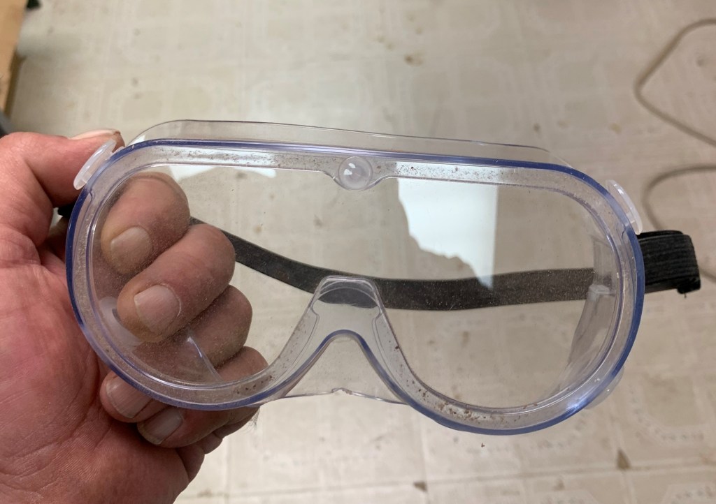 They give protection all the way around, seal tight against the skin, are not only impact resistant but dust resistant as well. Uncomfortable to wear? Yep. But would you rather be uncomfortable for a few hours or lose an eye? Yeah, thought so. They’re also cheap. You can usually get decent quality safety goggles for well under $10.