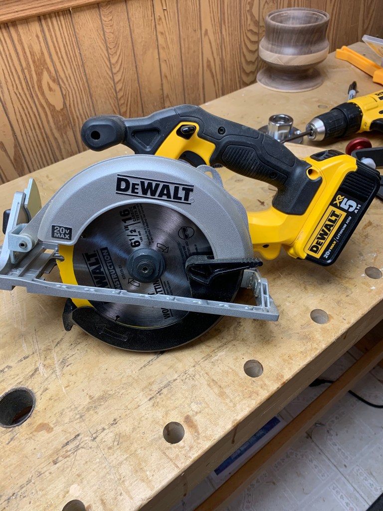 That isn’t DeWalt’s fault, of course. To be fair the saw itself isn’t bad. It’s about average or even a bit above average quality for it’s price. But almost all battery operated circular saws just aren’t very good. It’s basic physics. Cutting wood takes a lot of energy and a motor with a lot of torque. A DC motor and battery pack that is light enough to be easily handled by the average person just doesn’t have the torque or the energy storage capacity. So almost all battery operated circular saws are under powered, can’t cut material as thick, and the batteries discharge astonishingly fast. Stick with the AC ones.