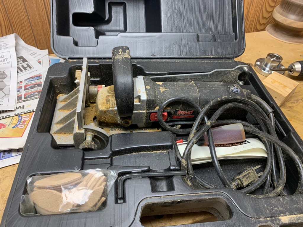 My biscuit joiner. What the hell is that? Well, back in the good old days when “This Old House” was an actual home improvement show that showed you how to actually do stuff instead of what it is today, which is apparently an advertising platform for whatever company gives them free stuff or coughs up a few bucks, the biscuit joiner was the tool to have if you were making tables or panels according to their in-house carpenter, Norm. And I was gluing up a lot of boards to make panels for wardrobes and tables and said, wow, this is something I have to have. I mean, if Norm says I have to have one, well, I do. Right? Spoiler warning: I didn’t.