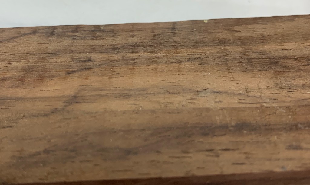 If you look close at this pic of a wood sample I got you can see the “washboard” showing up as dark streaks running from the top of the photo to the bottom. That indicates that either the feed rate was too fast, the blades were dull, or the planer was having some other problem.