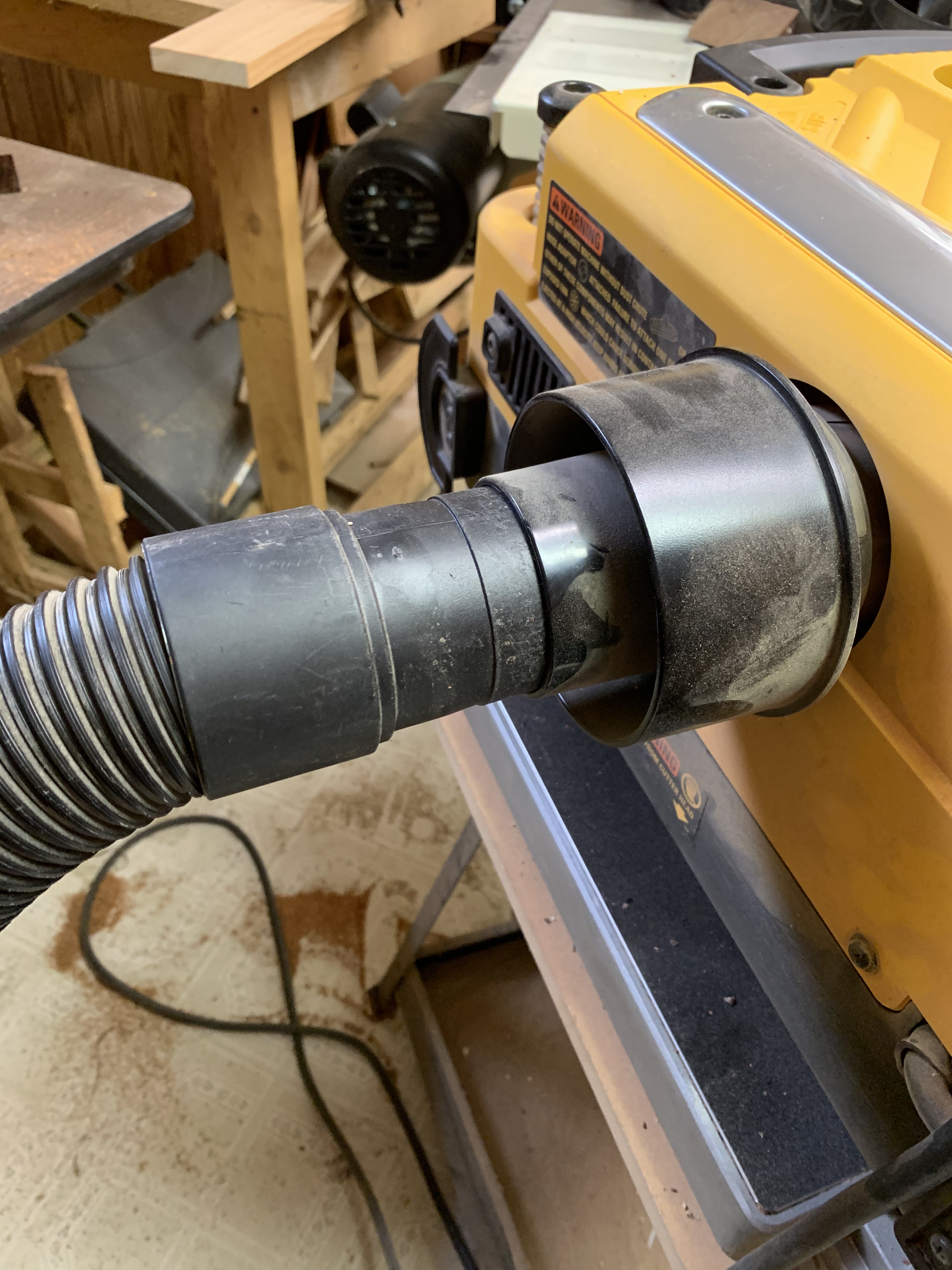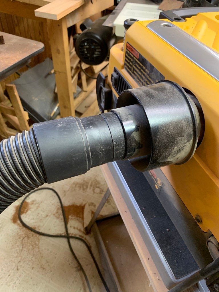 Does the DeWalt have drawbacks? You bet. It’s loud for one thing. You’re probably going to want to wear hearing protection when you run it just to be on the safe side. Infeed and outfeed tables are an extra cost option. I don’t have them on mine, and they claim you don’t really need them, but I wish I did and keep telling myself I should get them. They’d come in handy when feeding long boards through it. It will occasionally spit wood chips back into the machine onto the table, and if I don’t clear it out before feeding another board through it can embed the chips into the underside of the board or scratch it. And the dust collection system built into it blows out so much air that it can overwhelm a wimpy, inefficient dust collection system.