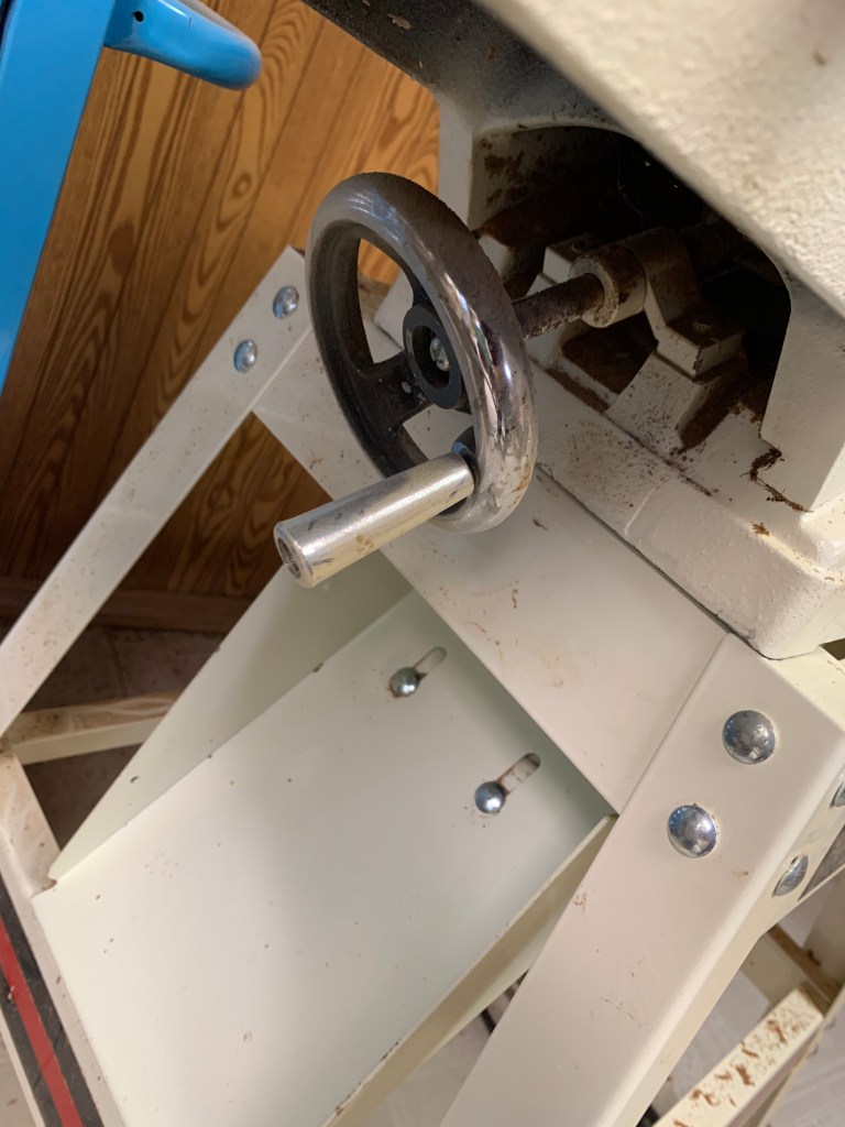 close up of the working end of the outfeed table on mine. To the right of the adjustment wheel you can see the dovetail joint that the table rides on.