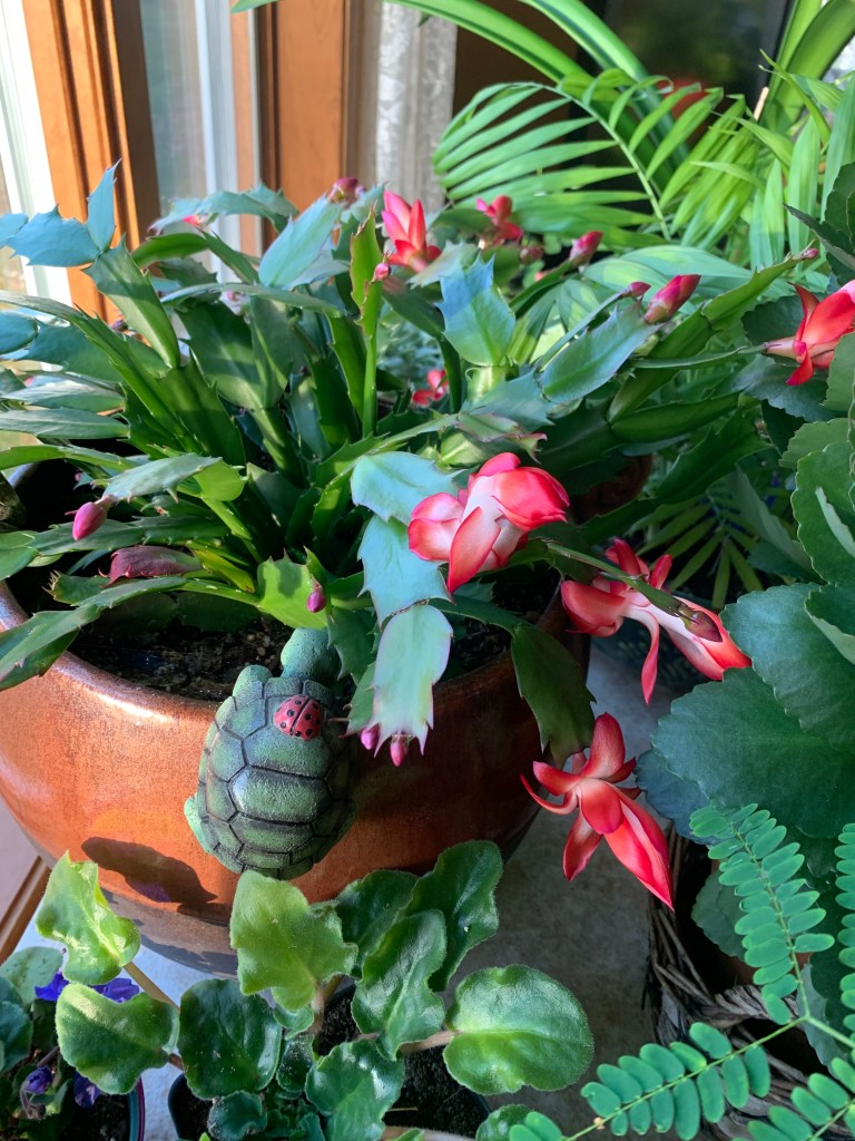 Her Christmas cactus is being equally fruitful. It has been in full blossom since October and is still going.